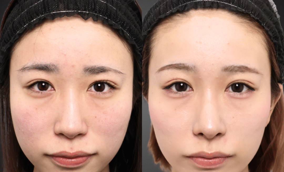 鼻の中にメッシュ糸が残っていたため、正面から見ると丸く大きく見える「団子鼻」と、横顔のEラインによる立体感にお悩みで来院されました。
