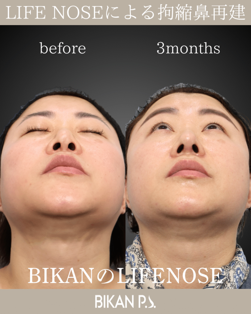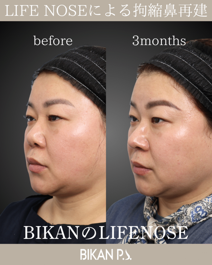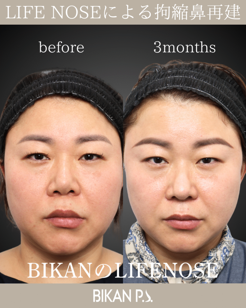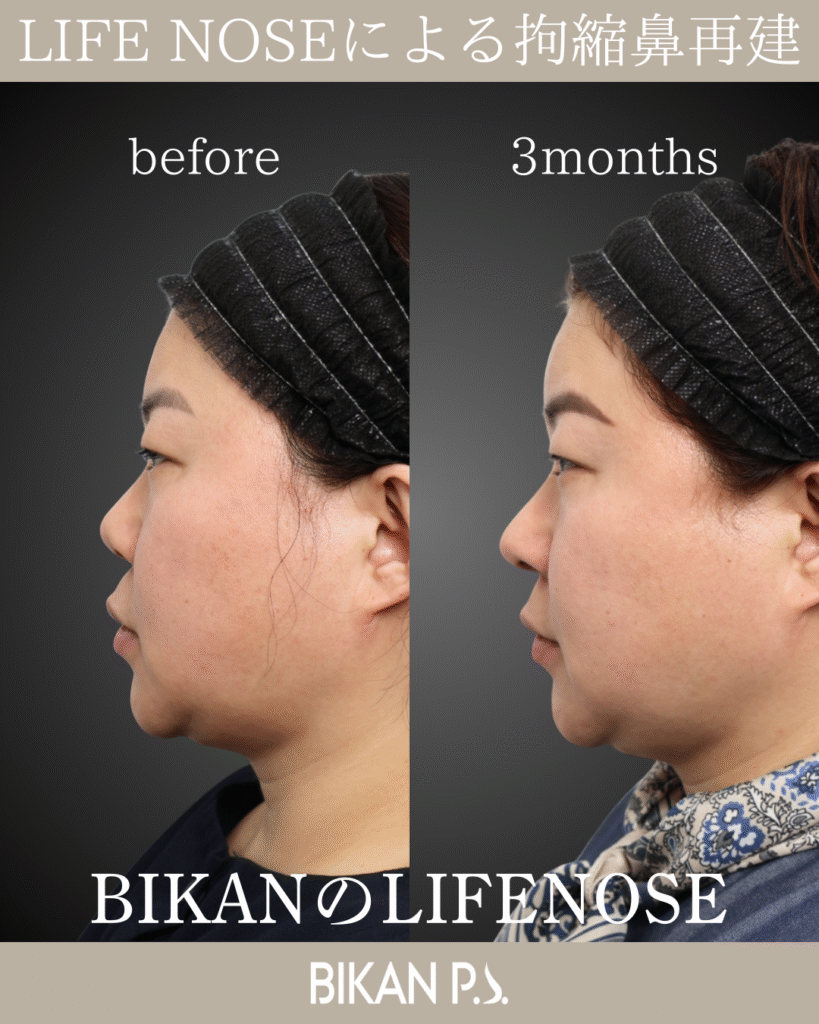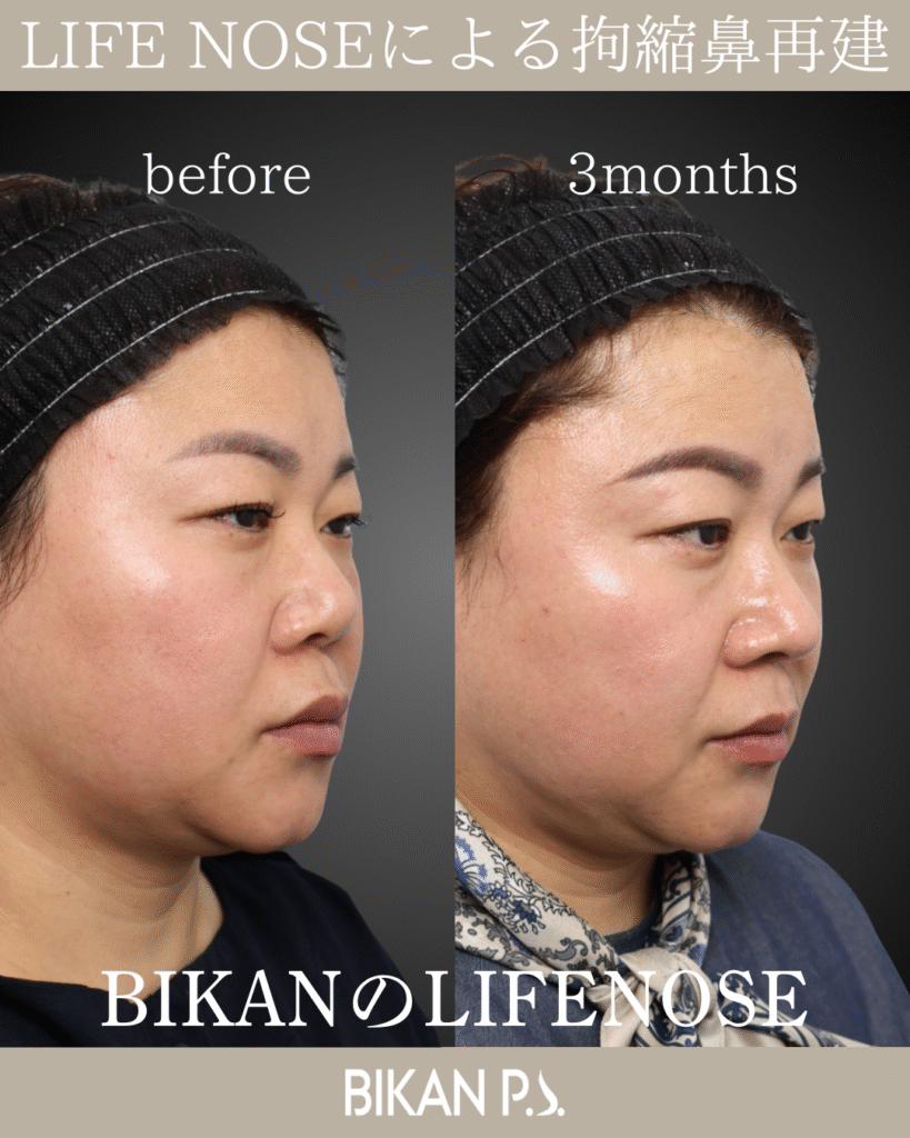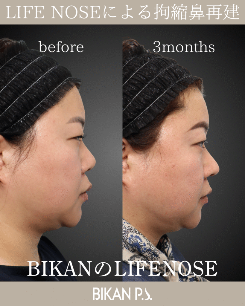 術後は鼻先が安定してしっかりと前方に伸び、顔全体のバランスも自然に整いました。患者様にも、見た目だけでなく鼻の柔らかさや呼吸のしやすさなど、機能面でもご満足いただいています。