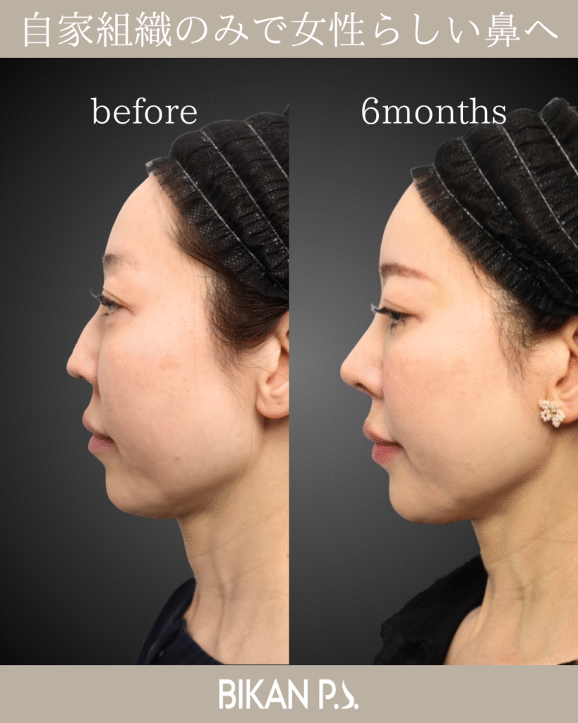 若々しく、ワシ鼻のない柔らかいラインの女性らしい鼻をご希望されました。