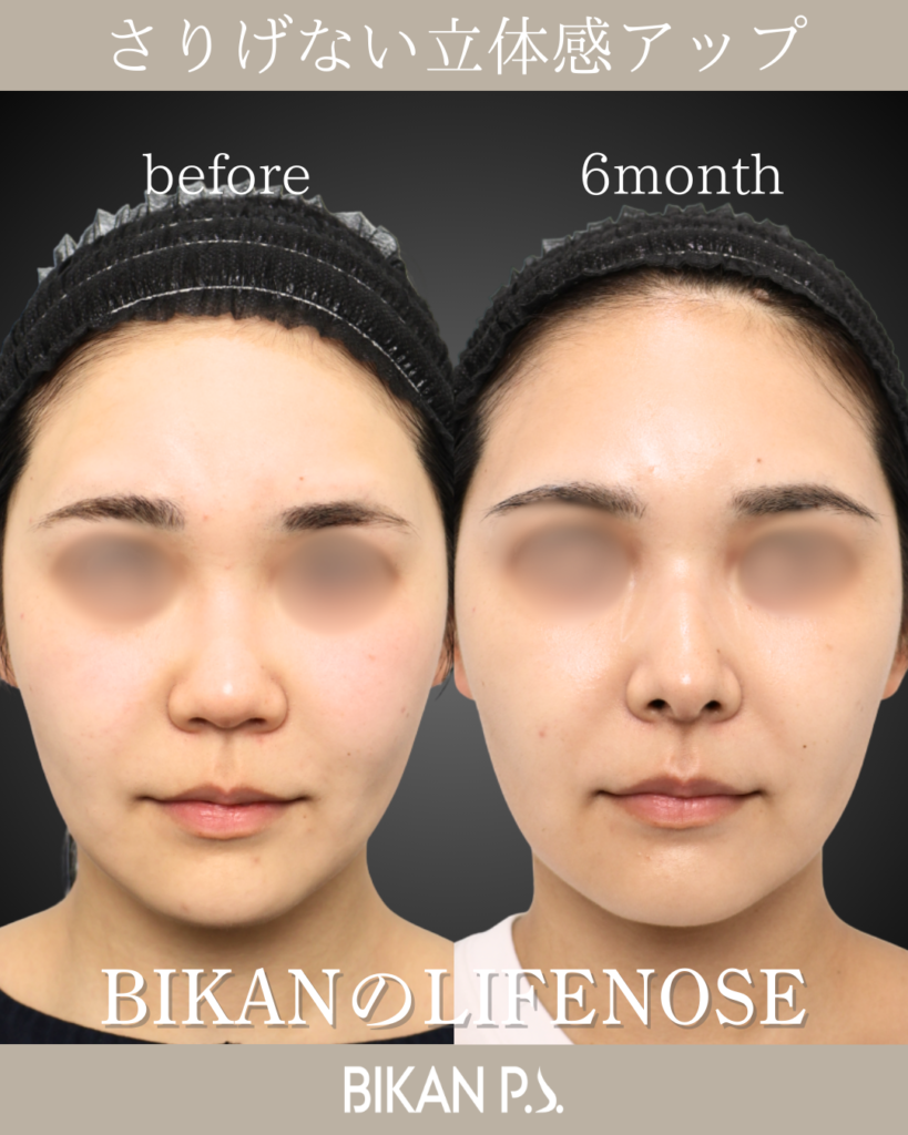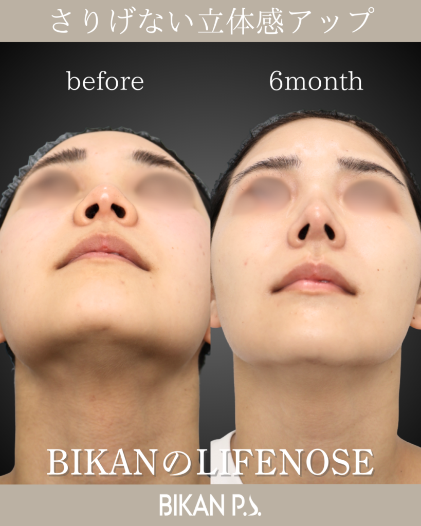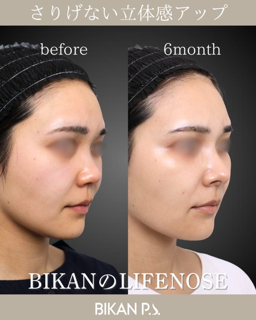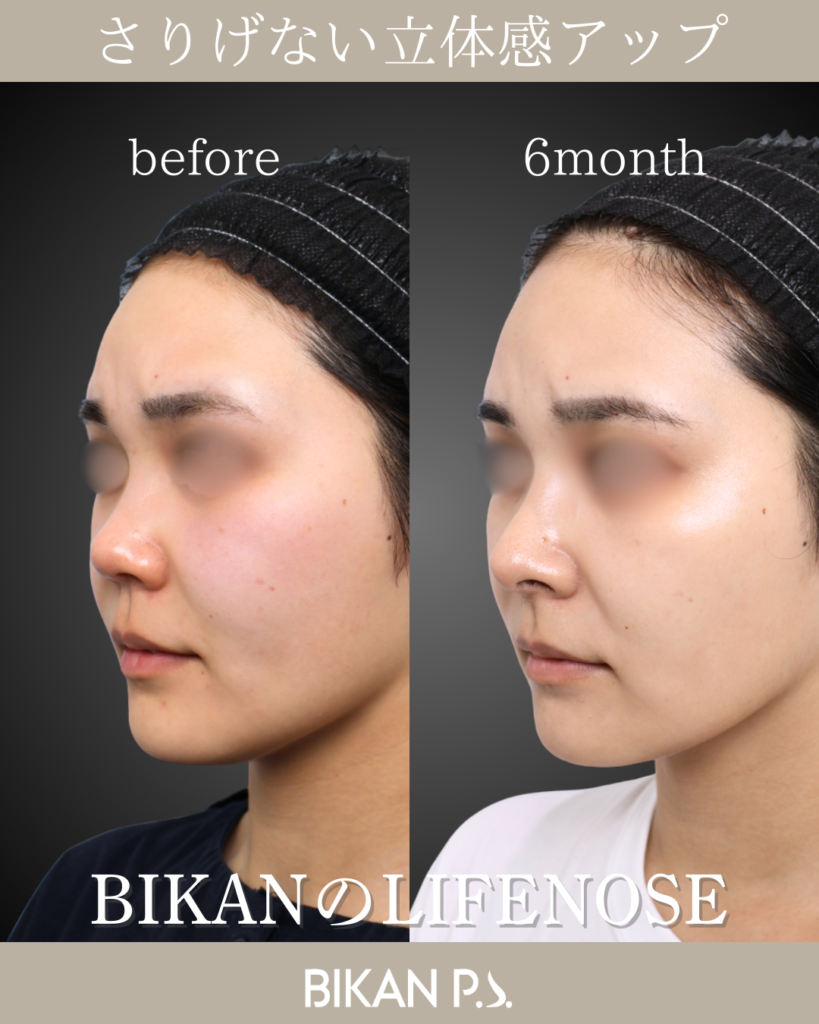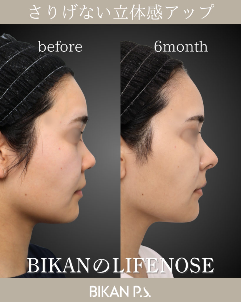 自家肋軟骨を使用した LIFE NOSE に、肋軟骨による貴族手術を組み合わせて施術を行いました。