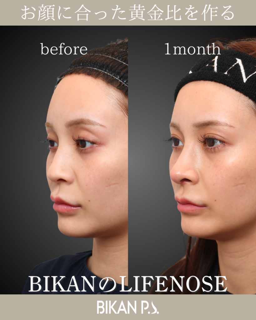 “鼻先の高さ、角度は変えたいけどナチュラルに。やりすぎ感は出したくない”というご相談でした。
