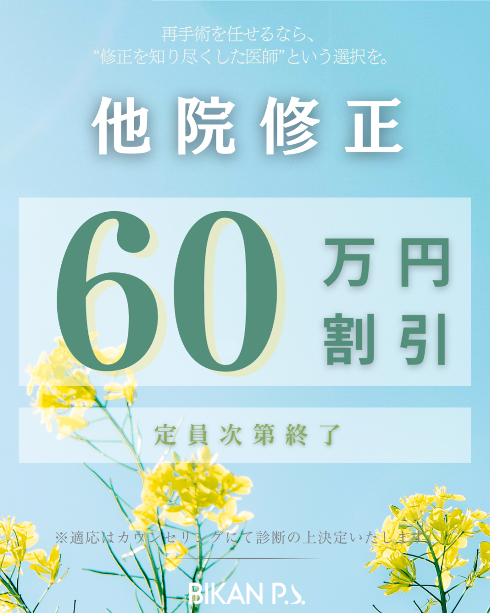 無理な勧誘はございません。他院修正は高額になり得る手術になります。割引やモニターのご相談も参りま...